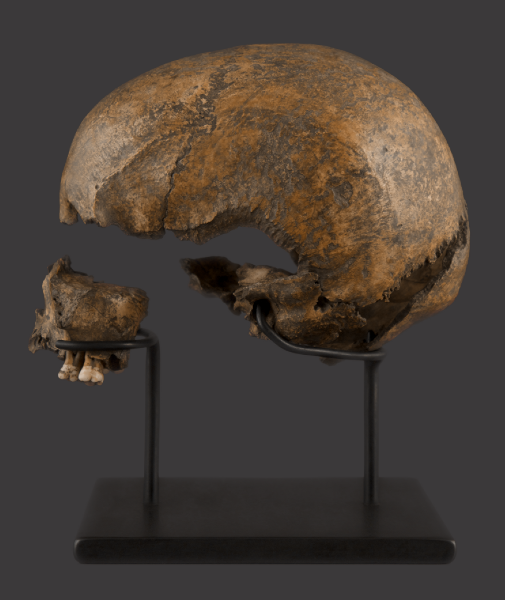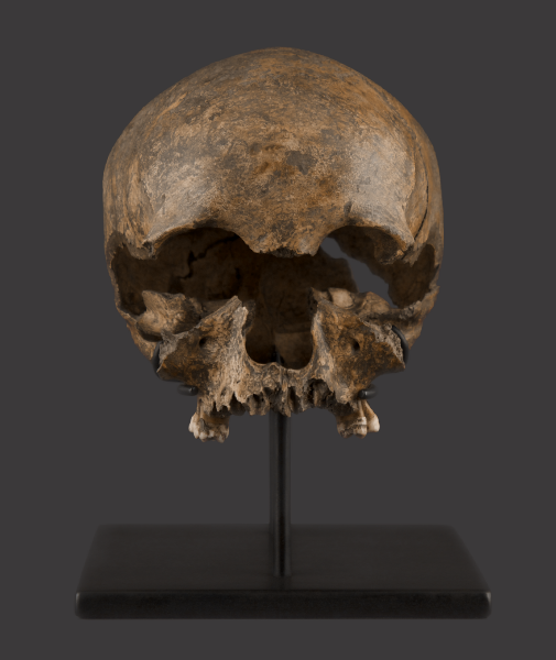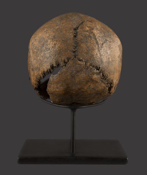 This small skull from a young female was discovered during post war archaeological excavations in the city of Utrecht, Holland and was reputedly recovered from a disused, filled in ‘plague house’ cellar, purposefully sealed up with masonry, probably during or shortly after an outbreak of the disease. The skull has acquired an attractive patina through prolonged burial and subsequent handling.