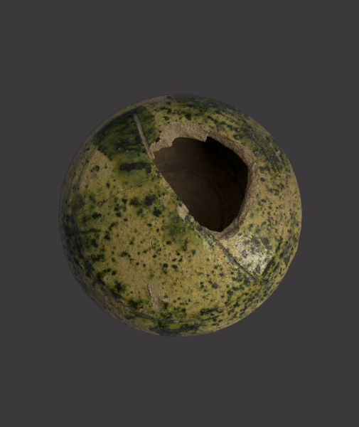 From the mid 13th century to the 16th century, a type of pale coloured earthenware, with a slightly sandy texture was produced and widely used in London and the surrounding areas. Typically covered in areas of characteristic and highly distinctive speckled green glaze these products are collectively known as ‘Surrey Whiteware’ due to their unglazed body coloration and places of production at a variety of locations in Surrey and along the Surrey-Hampshire borders.