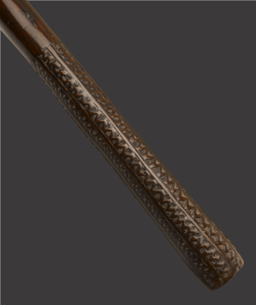 Of all the weapons available to the Fijians, the club was unrivalled in popularity. Designed to shatter the skull, killing an enemy in this manner brought more prestige to a warrior than by any other method. Many Fijian clubs found their way to England during the 19th Century as exotic souvenirs from encounters with the islanders both violent and acquired in trade. They were considered a most desirable item, their form, decoration and gruesome tally markings an embodiment of the dark romance surrounding the stories emanating from this part of the world. Public interest and appetite for viewing such artefacts was particularly keen, in turn giving a certain ‘prestige’ to the owner of such pieces.