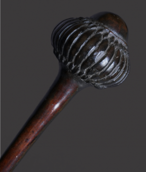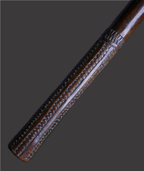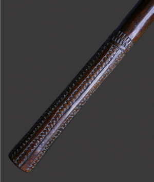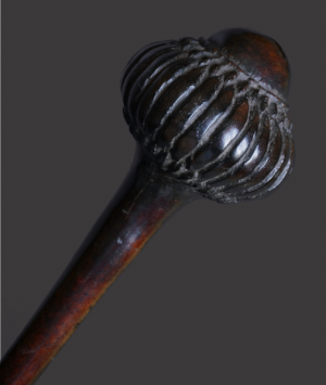 Of all the weapons available to the Fijians, the club was unrivalled in popularity. Designed to shatter the skull, killing an enemy in this manner brought more prestige to a warrior than by any other method. Many Fijian clubs found their way to England during the 19th Century as exotic souvenirs from encounters with the islanders both violent and acquired in trade. They were considered a most desirable item, their form, decoration and gruesome tally markings an embodiment of the dark romance surrounding the stories emanating from this part of the world. Public interest and appetite for viewing such artefacts was particularly keen, in turn giving a certain ‘prestige’ to the owner of such pieces.