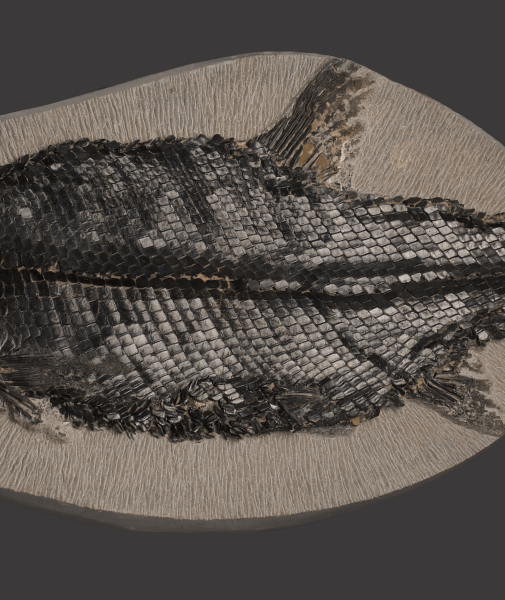 Vertebrate remains such as this magnificent fish specimen are extremely uncommon finds from the Dorset ‘Lias’, It is very well preserved and has been revealed from within a hard nodular limestone matrix with the use of acid preparation techniques.