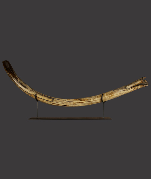 Most mammoth tusk discoveries occur in frozen environments such as in Siberia, where due to the conditions they have often survived in their organic state. On occasion they are recovered from the North sea by fishermen, usually in fragmentary and often rather unstable condition. Almost all recovered examples worldwide are deeply stained.