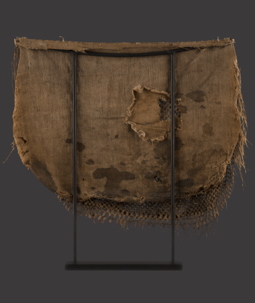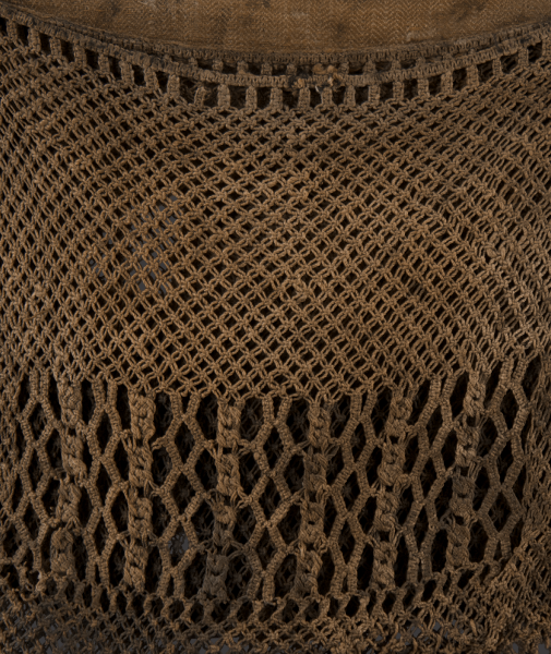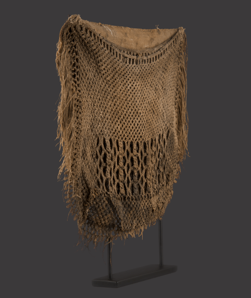 Consisting of two pouches, the decorative net front-piece with typical fringe was probably used for gathering shell fish.