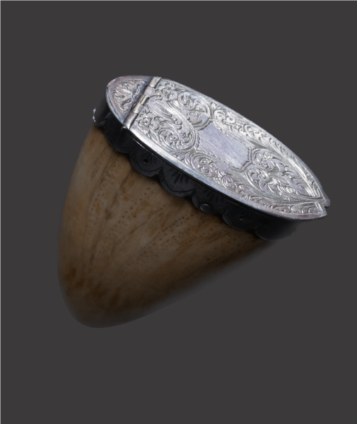 An Early 19th Century Silver Mounted Sperm Whale Tooth ‘Scrimshaw’ Snuff Box