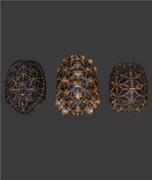 A Group of Three Superb 19th Century Juvenile Star Tortoise shell specimens, (‘Psammobates Oculiferus’), (‘Geochelone Elegans’)